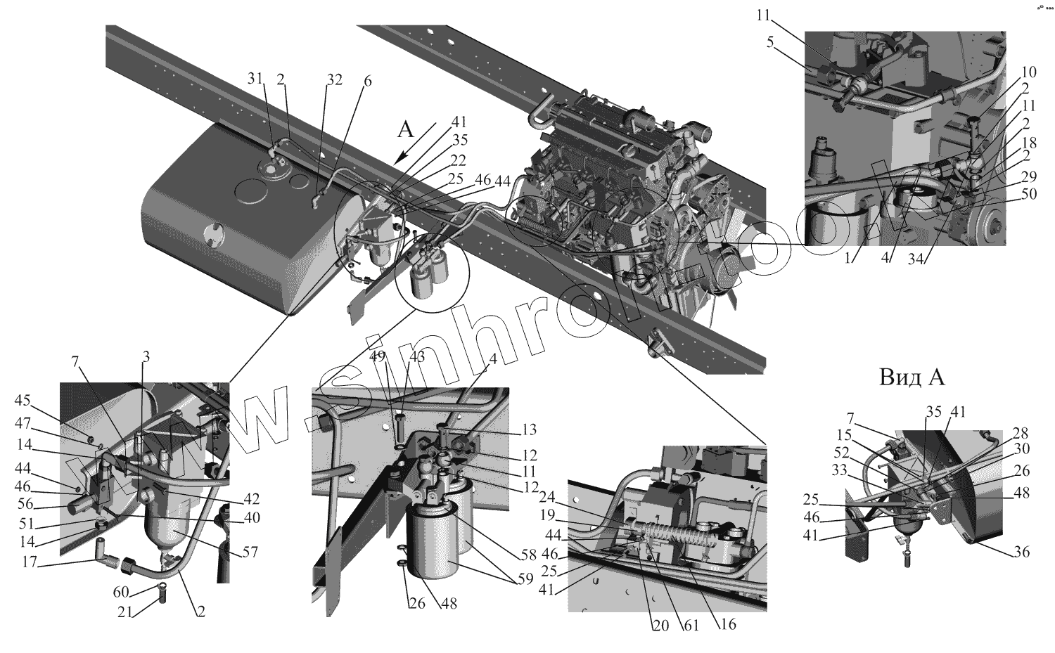Каталог запасных частей к технике: МАЗ-437130 (Зубренок). Установка топливопроводов 437030-1104002