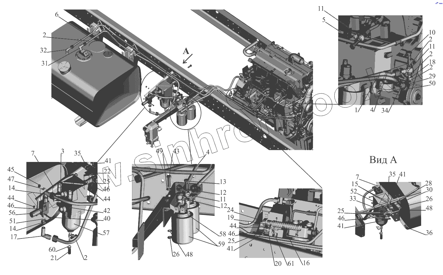 Каталог запасных частей к технике: МАЗ-437130 (Зубренок). Установка топливопроводов 437130-1104002