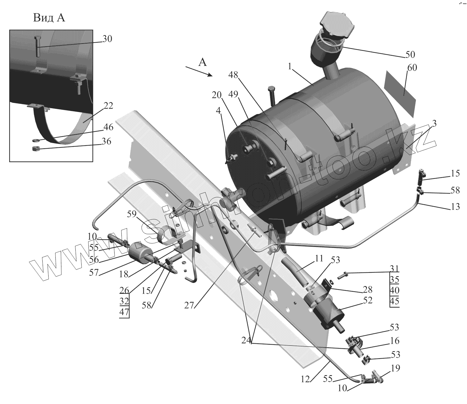 Каталог запасных частей к технике: МАЗ-437130 (Зубренок). Установка топливопроводов подогревателя 437041-1015004