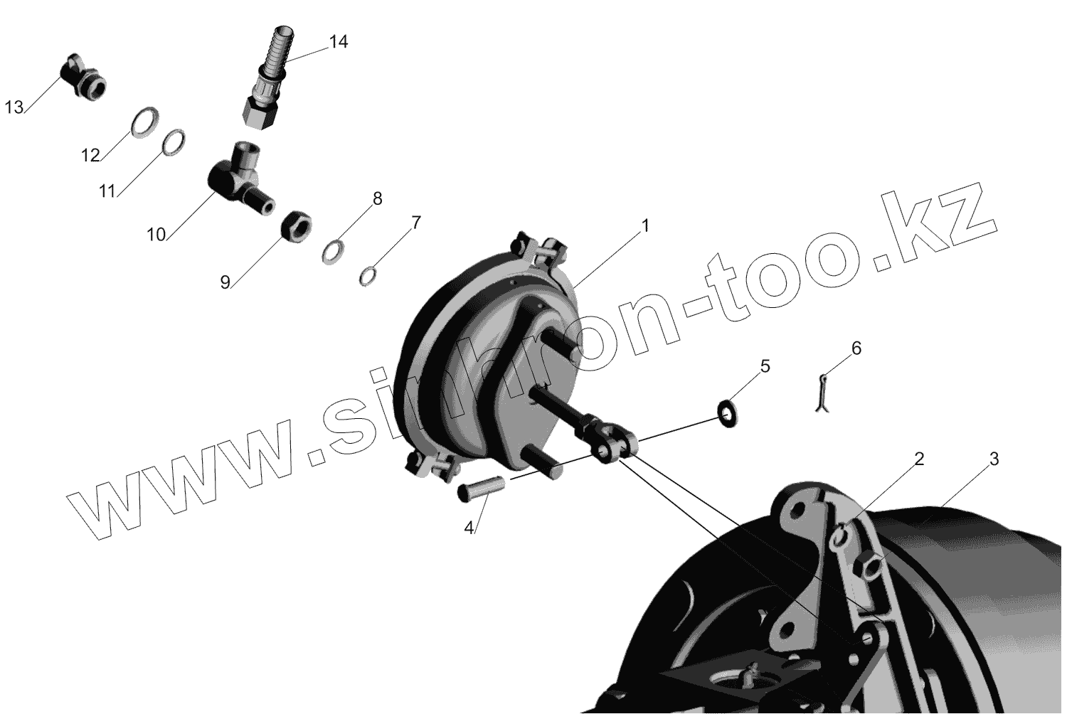 Каталог запасных частей к технике: МАЗ-437130 (Зубренок). Установка тормозных камер 437141-3519001
