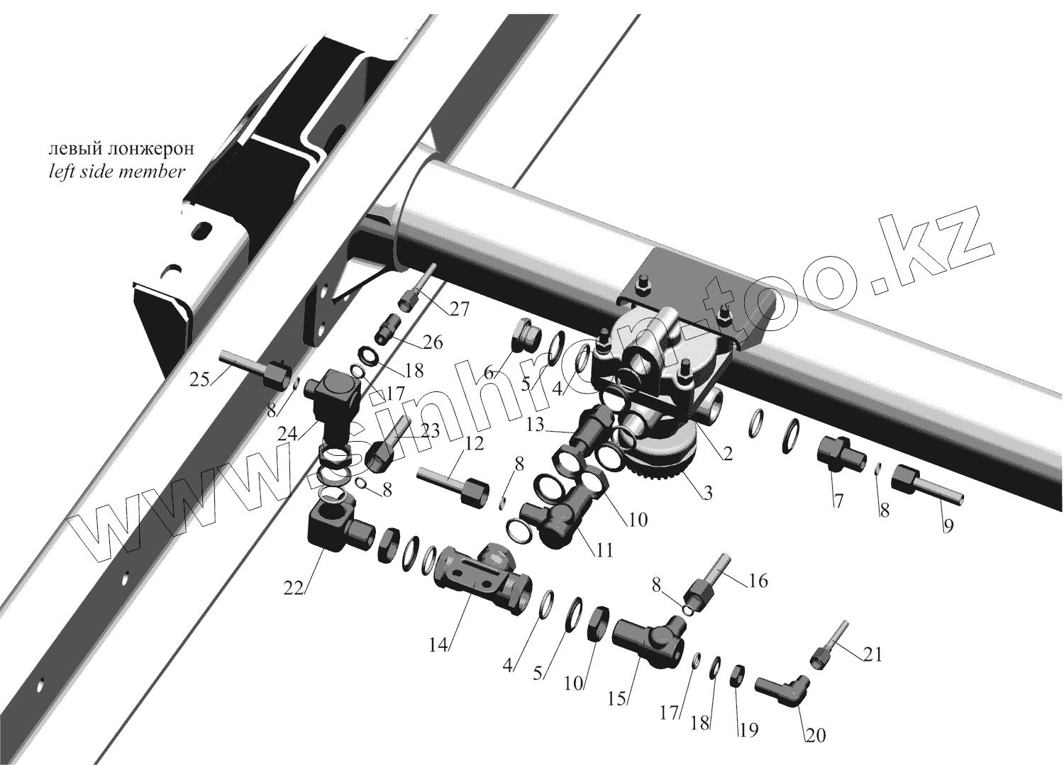 Каталог запасных частей к технике: МАЗ-437130 (Зубренок). Установка ускорительного клапана стояночной системы