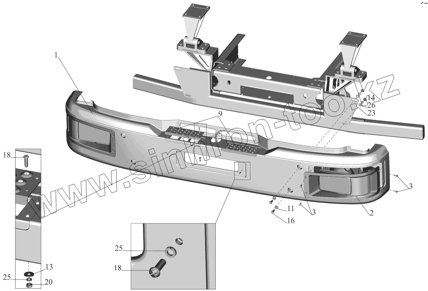 Каталог запасных частей к технике: МАЗ-437130 (Зубренок). Установка верхнего бампера 437140-2800003