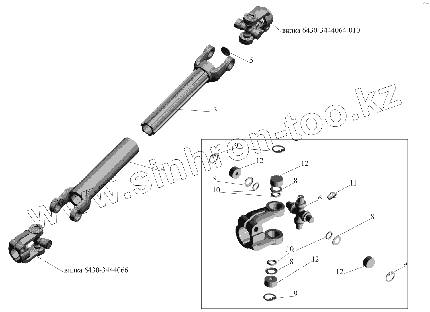 Каталог запасных частей к технике: МАЗ-437130 (Зубренок). Вал нижний 447131-3444050