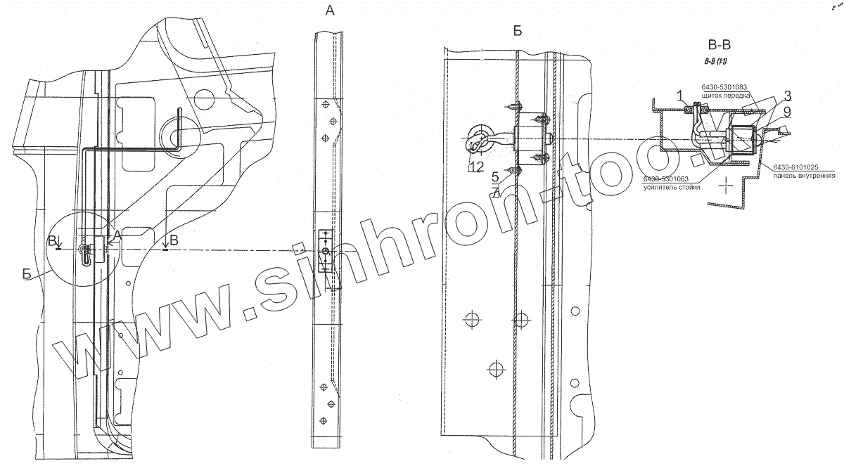 Каталог запасных частей к технике: МАЗ-4371P2-0000421-000. Установка датчика открытой двери