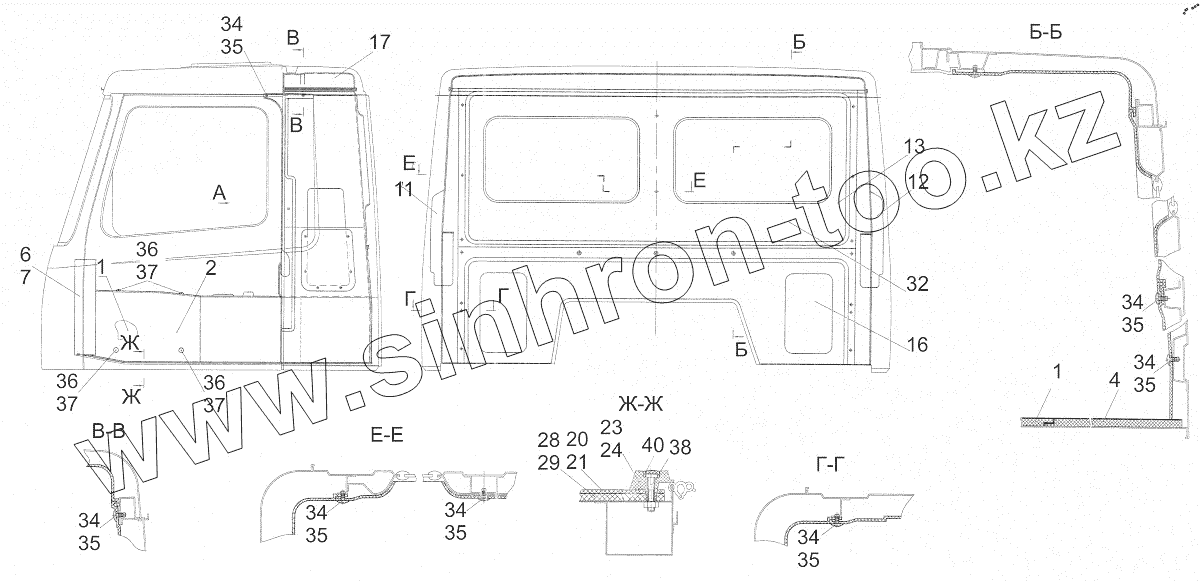 Каталог запасных частей к технике: МАЗ-4371P2-0000421-000. Установка обивок и ковриков