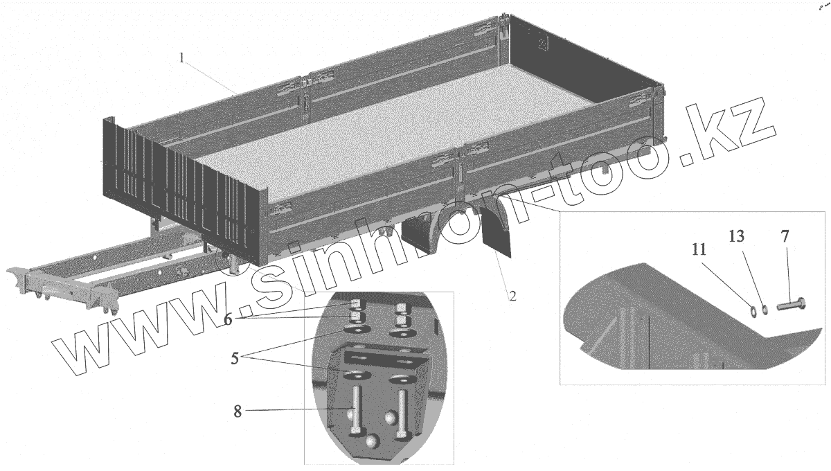 Каталог запасных частей к технике: МАЗ-4371P2-0000421-000. Установка платформы