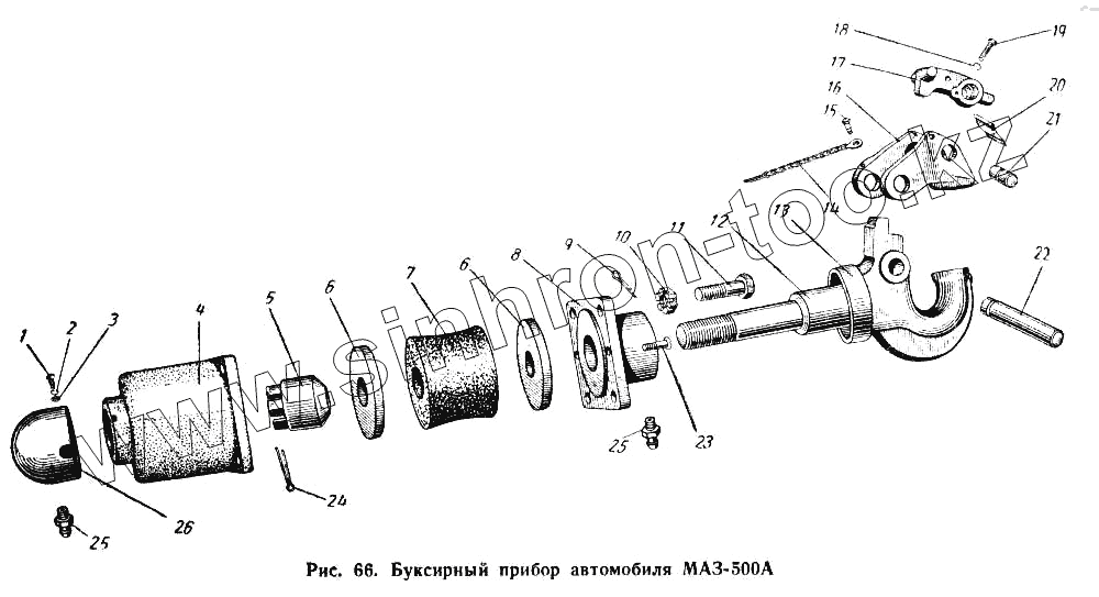 Каталог запасных частей к технике: МАЗ-500А. Буксирный прибор автомобиля МАЗ-500А