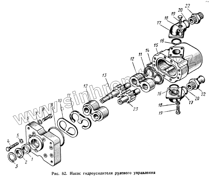 Каталог запасных частей к технике: МАЗ-500А. Насос гидроусилителя рулевого управления