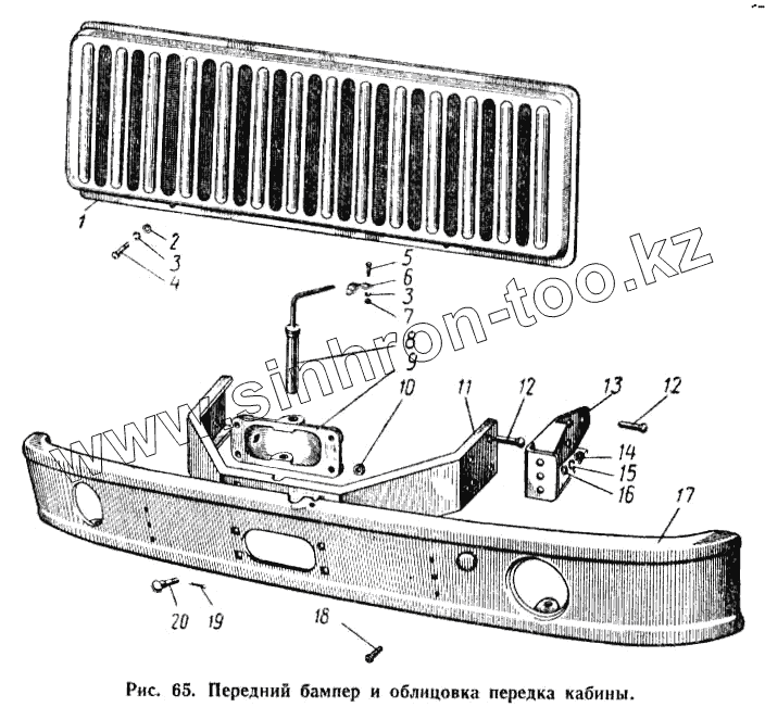 Каталог запасных частей к технике: МАЗ-500А. Передний бампер и облицовка передка кабины