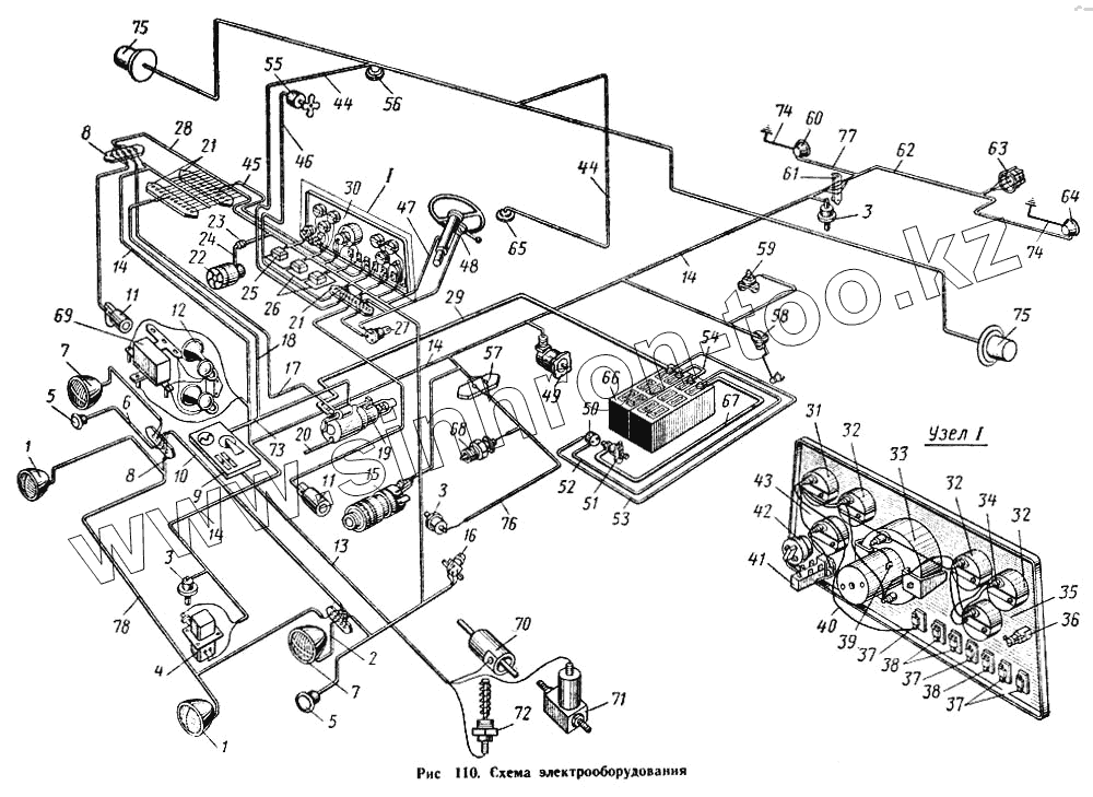 Каталог запасных частей к технике: МАЗ-500А. Схема электрооборудования