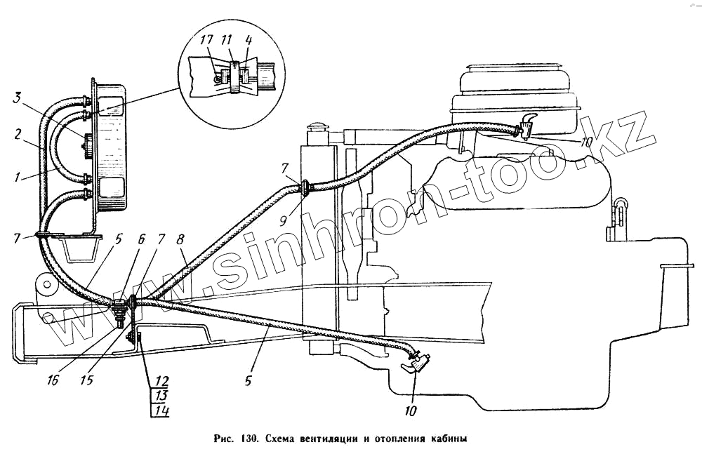 Каталог запасных частей к технике: МАЗ-500А. Схема вентиляции и отопления кабины