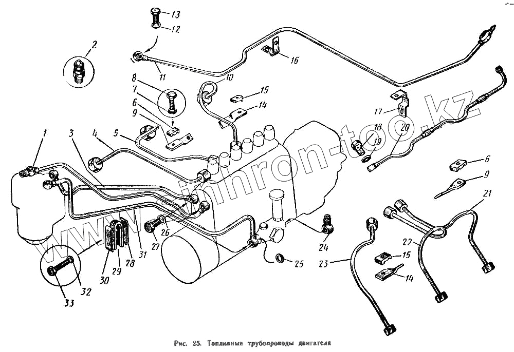 Каталог запасных частей к технике: МАЗ-500А. Топливные трубопроводы двигателя