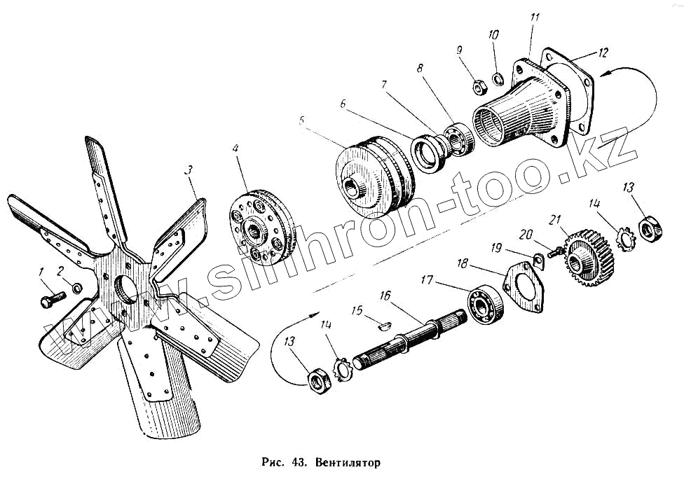 Каталог запасных частей к технике: МАЗ-500А. Вентилятор