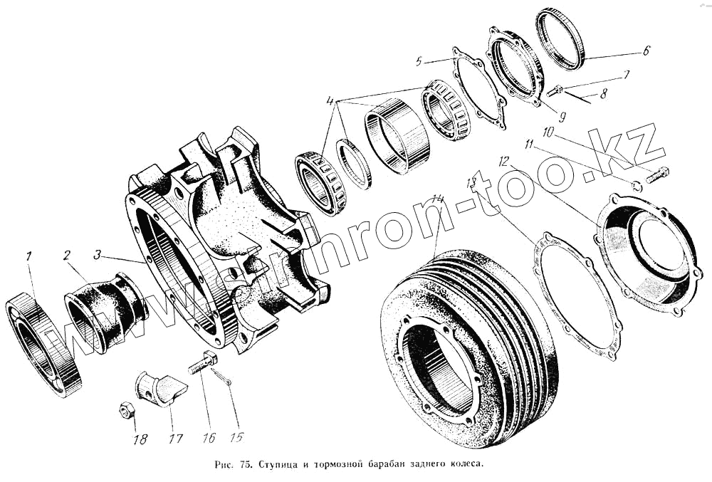 Каталог запасных частей к технике: МАЗ-503А. Ступица и тормозной барабан заднего колеса