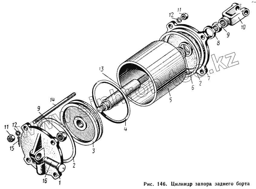 Каталог запасных частей к технике: МАЗ-503А. Цилиндр запора заднего борта