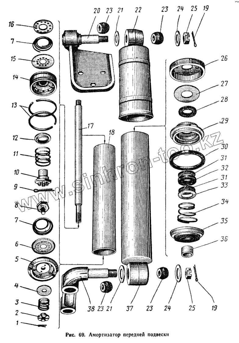Каталог запасных частей к технике: МАЗ-504А. Амортизатор передней подвески
