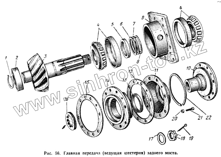 Каталог запасных частей к технике: МАЗ-504А. Главная передача (ведущая шестерня) заднего моста