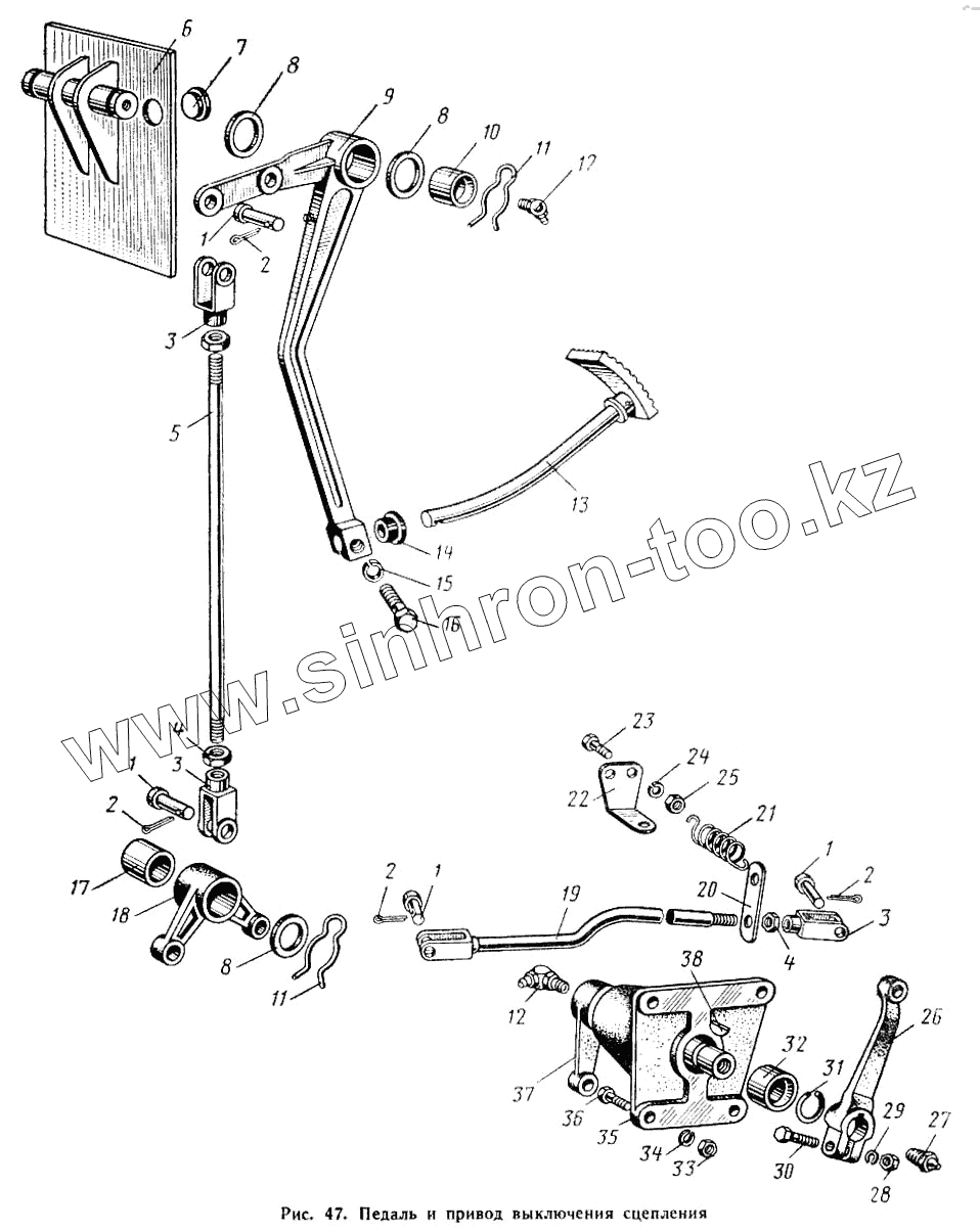 Каталог запасных частей к технике: МАЗ-504А. Педаль и привод выключения сцепления