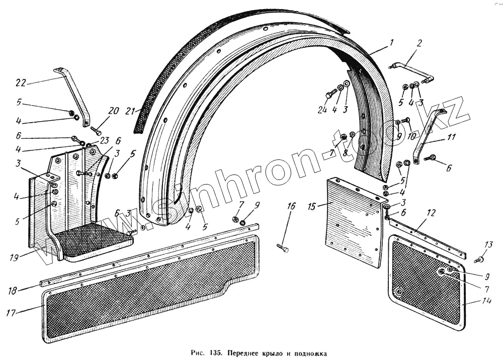 Каталог запасных частей к технике: МАЗ-504А. Переднее крыло и подножка