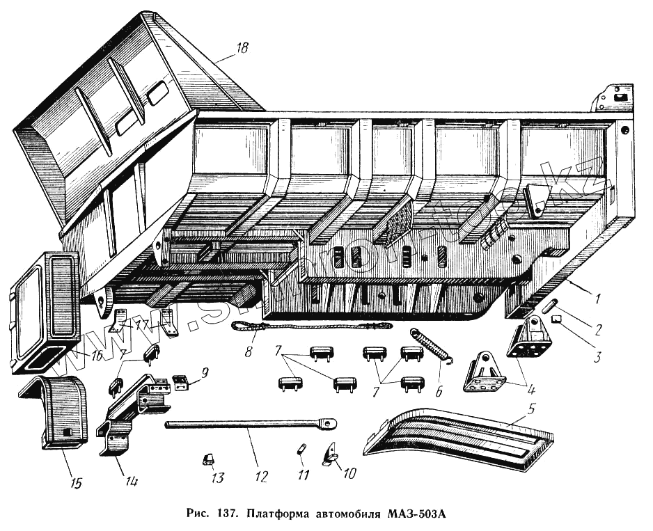 Каталог запасных частей к технике: МАЗ-504А. Платформа автомобиля МАЗ-503А