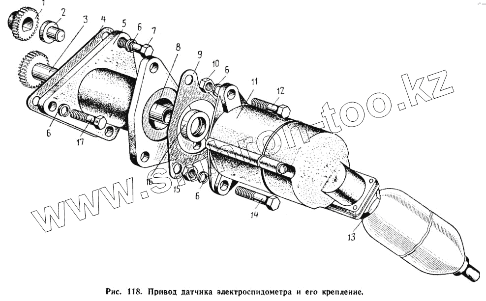 Каталог запасных частей к технике: МАЗ-504А. Привод датчика электроспидометра и его крепление