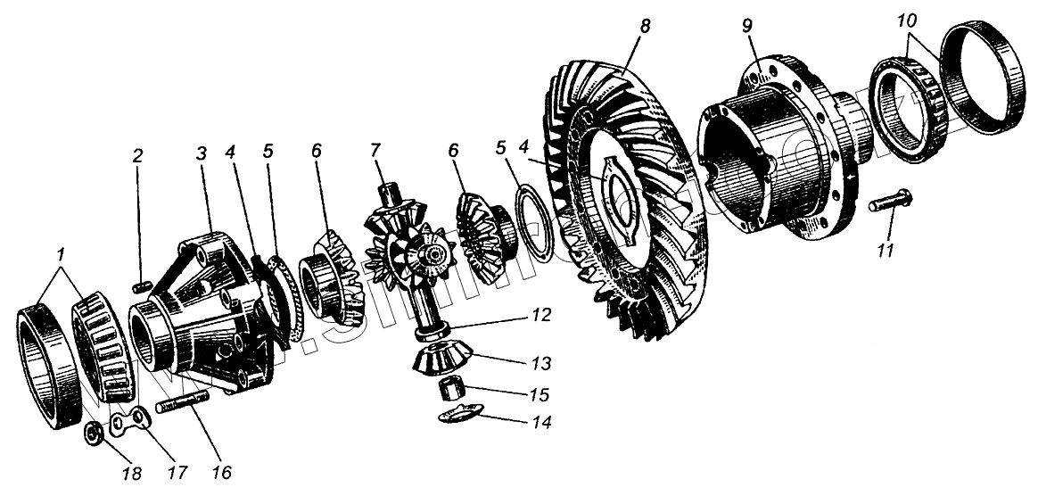 Каталог запасных частей к технике: МАЗ-504В. Дифференциал заднего моста