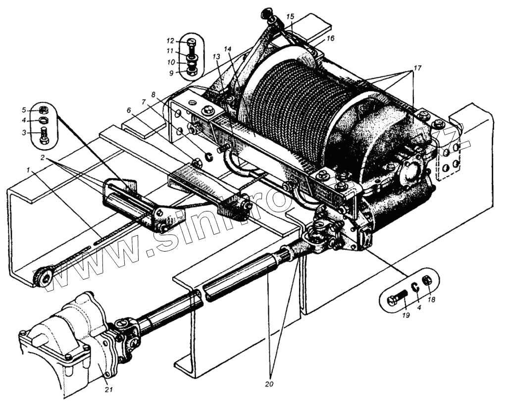 Каталог запасных частей к технике: МАЗ-504В. Лебедка, вал карданный лебедки МАЗ-509А