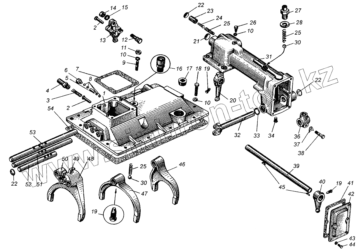 Каталог запасных частей к технике: МАЗ-504В. Механизм переключения передач