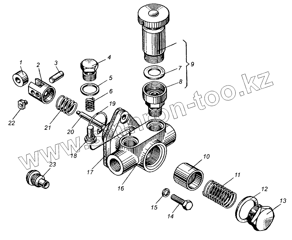Кран разобщительный пневмотормозов МАЗ-5335, МАЗ-5429, МАЗ-509А, МАЗ-504В