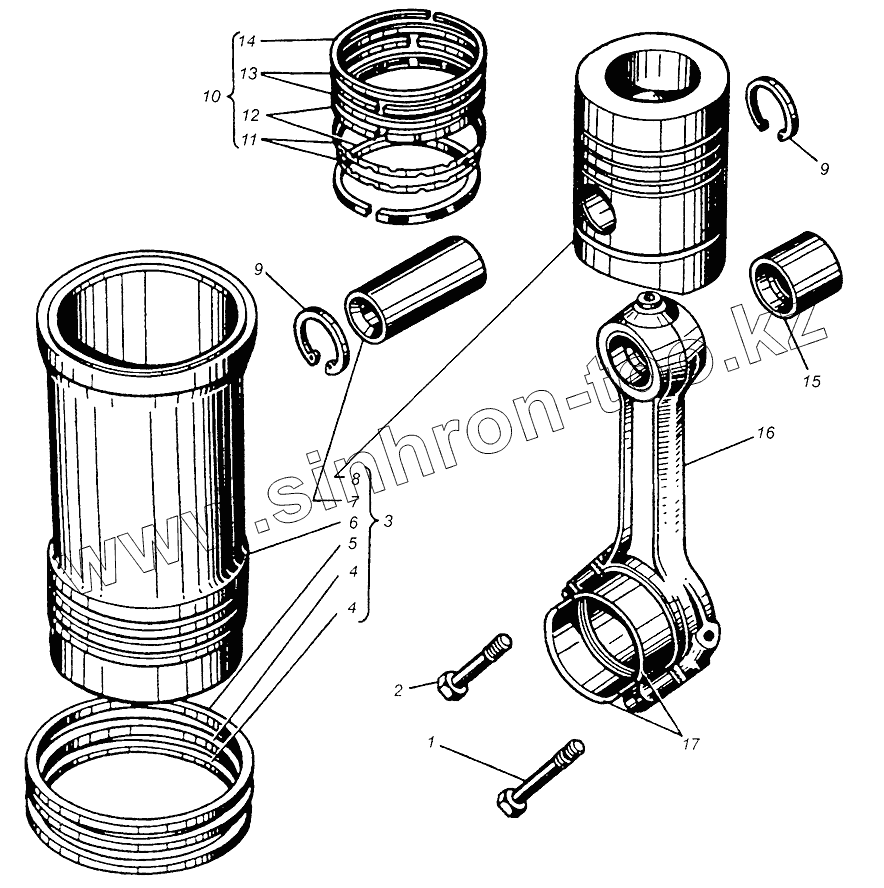 Каталог запасных частей к технике: МАЗ-504В. Поршень и шатун