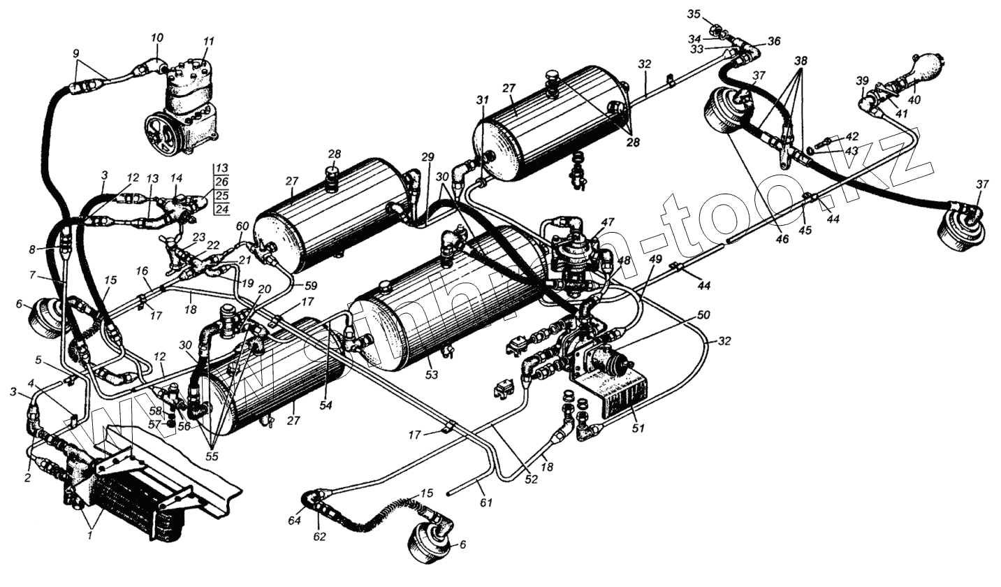Каталог запасных частей к технике: МАЗ-504В. Привод пневматический тормозов МАЗ-509А