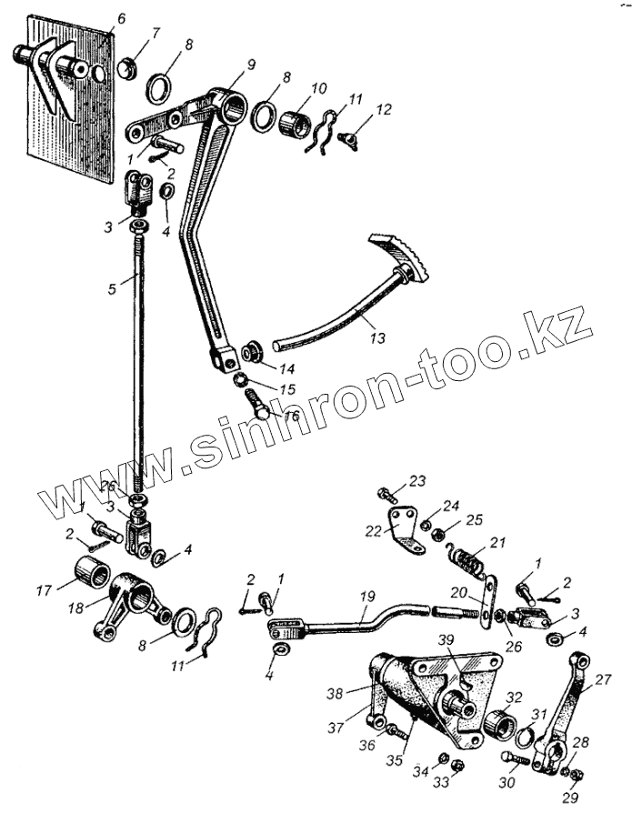 Каталог запасных частей к технике: МАЗ-504В. Привод выключения сцепления