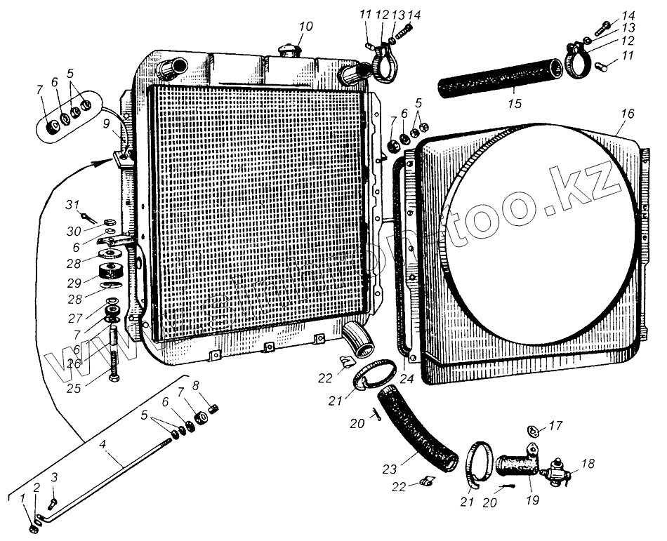 Каталог запасных частей к технике: МАЗ-504В. Радиатор и его крепление