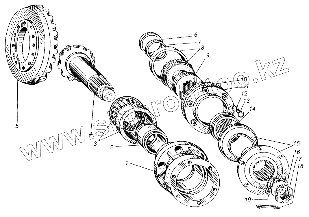 Каталог запасных частей к технике: МАЗ-504В. Шестерня ведущая с картером МАЗ-509А