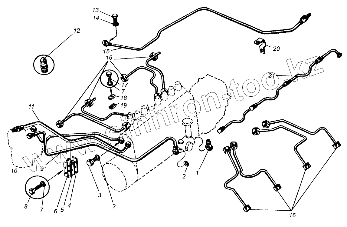 Каталог запасных частей к технике: МАЗ-504В. Топливные трубопроводы двигателя ЯМЗ-238