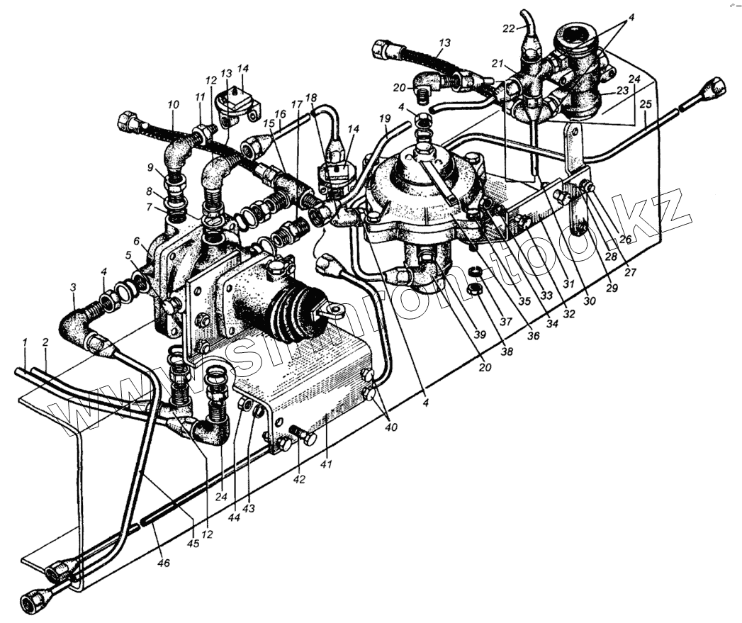 Каталог запасных частей к технике: МАЗ-504В. Трубопроводы к тормозным кранам МАЗ-5335