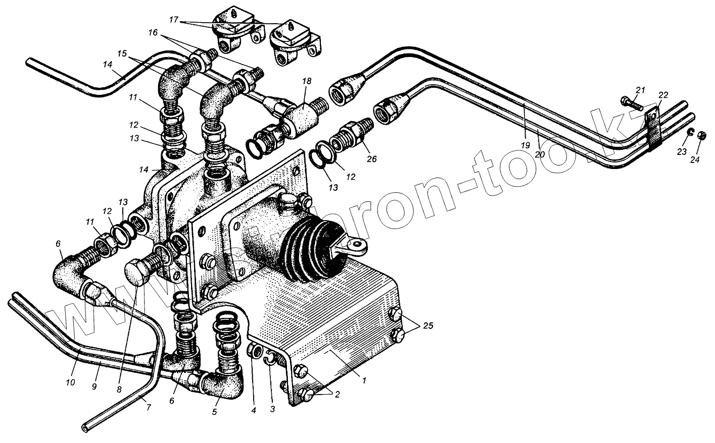 Каталог запасных частей к технике: МАЗ-504В. Трубопроводы к тормозным кранам МАЗ-5549