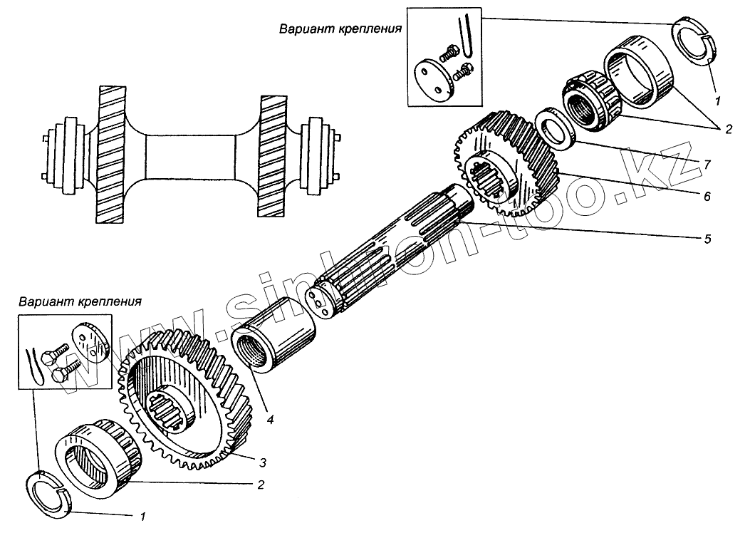 Каталог запасных частей к технике: МАЗ-504В. Вал промежуточный раздаточной коробки МАЗ-509А