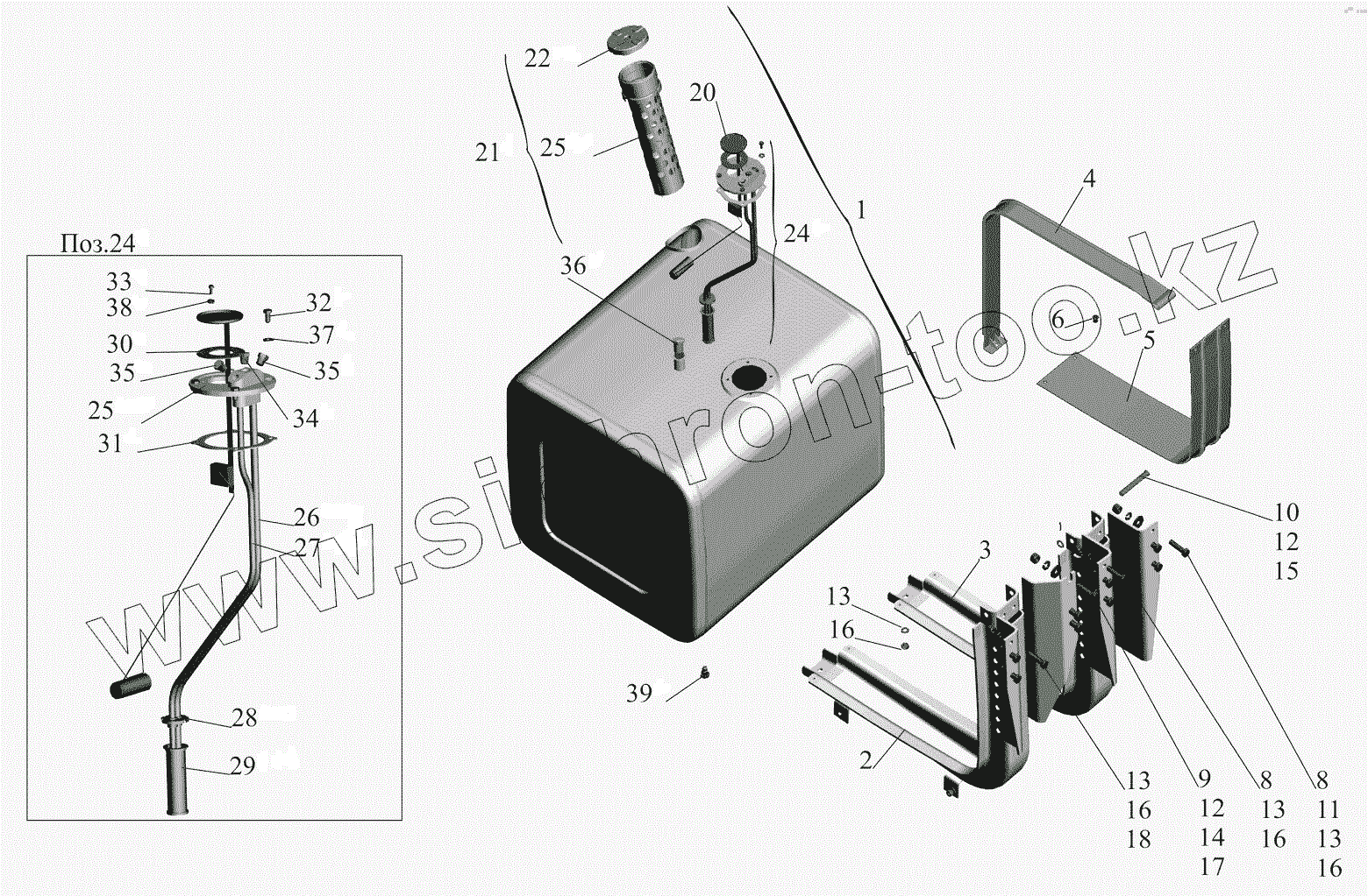 Каталог запасных частей к технике: МАЗ-530905. Крепление топливного бака 530905-1101002