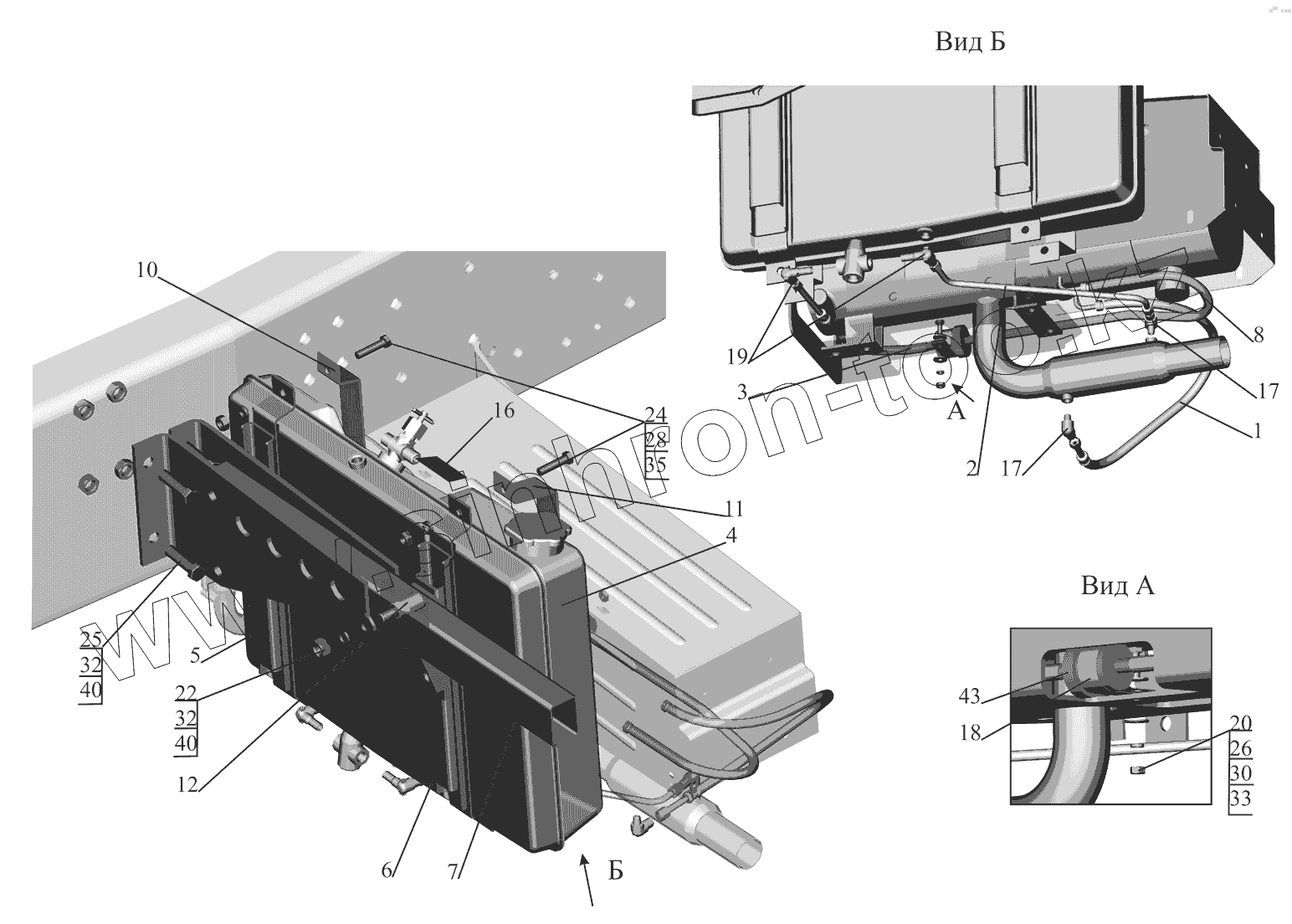 Каталог запасных частей к технике: МАЗ-530905. Крепление топливопроводов подогревателя 530905-1015004-020
