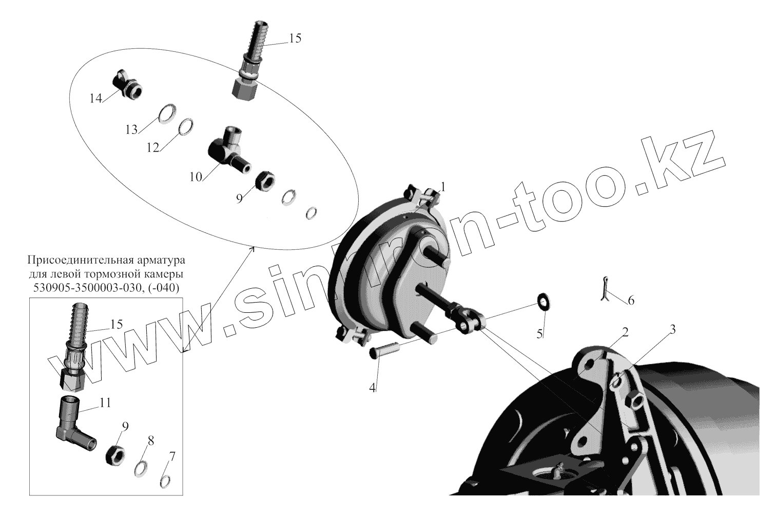 Каталог запасных частей к технике: МАЗ-530905. Крепление тормозных камер и присоединительной арматуры