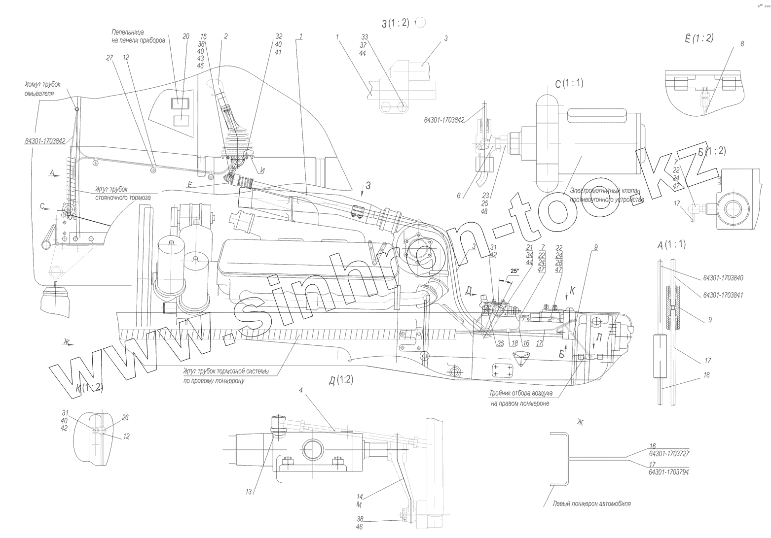 Каталог запасных частей к технике: МАЗ-530905. Привод управления коробкой передач 530905-1700002
