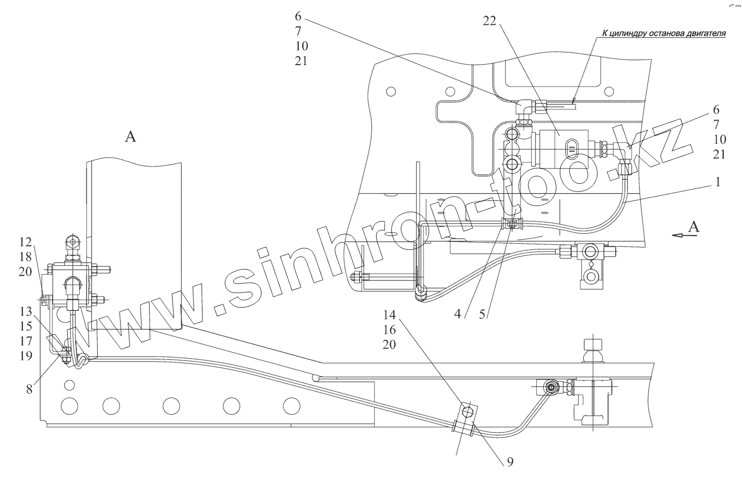 Каталог запасных частей к технике: МАЗ-530905. Привод выключения двигателя противоугонным устройством 544008-1115004