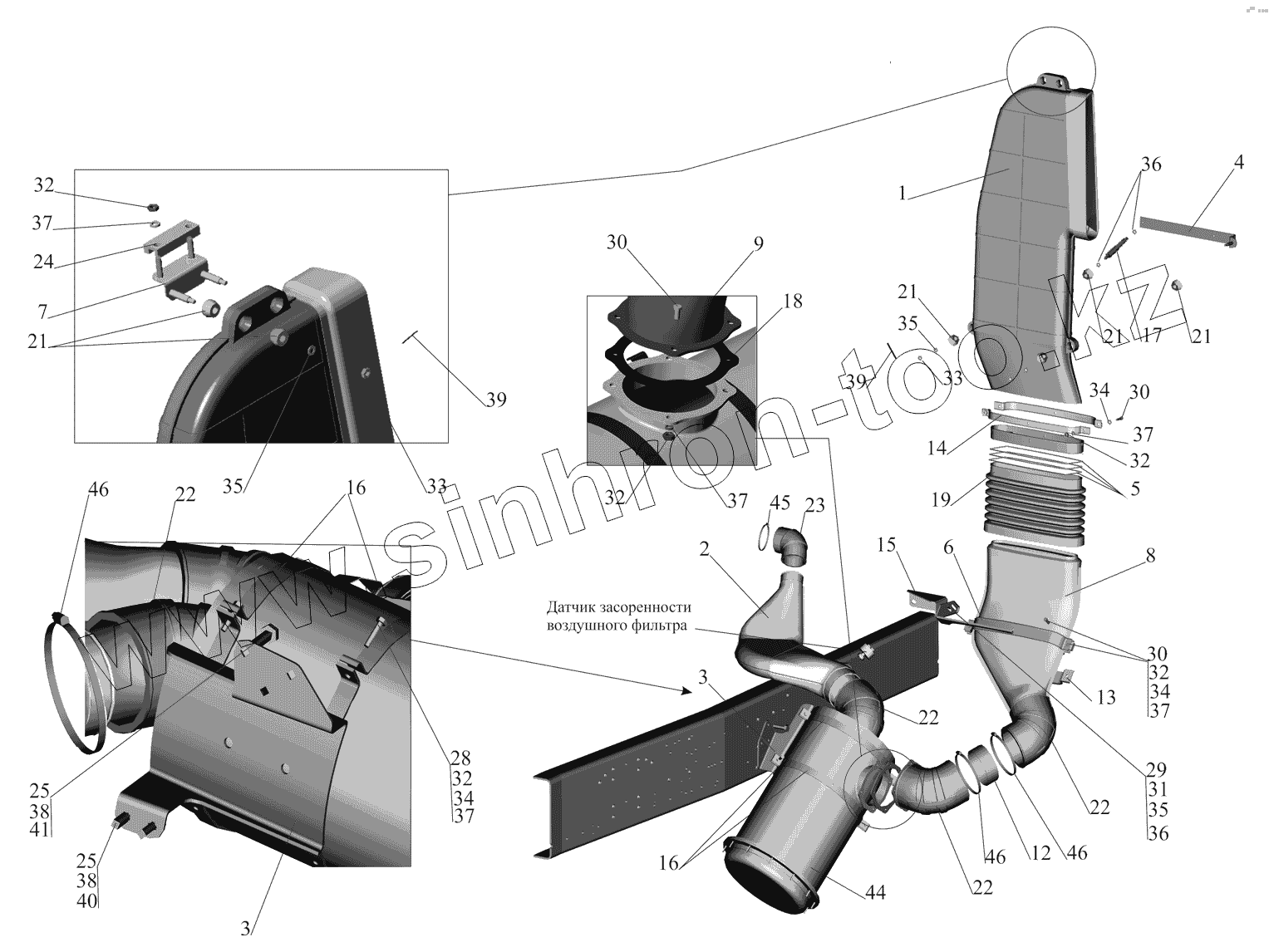 Каталог запасных частей к технике: МАЗ-530905. Система питания воздухом 630208-1109002