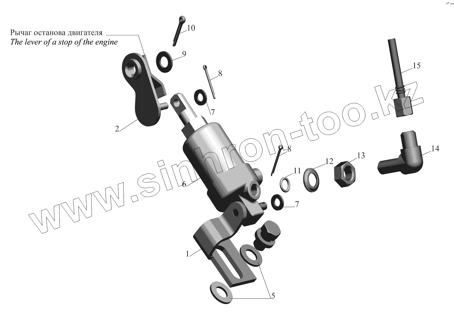 Каталог запасных частей к технике: МАЗ-530905. Цилиндр останова двигателя 642208-3570004