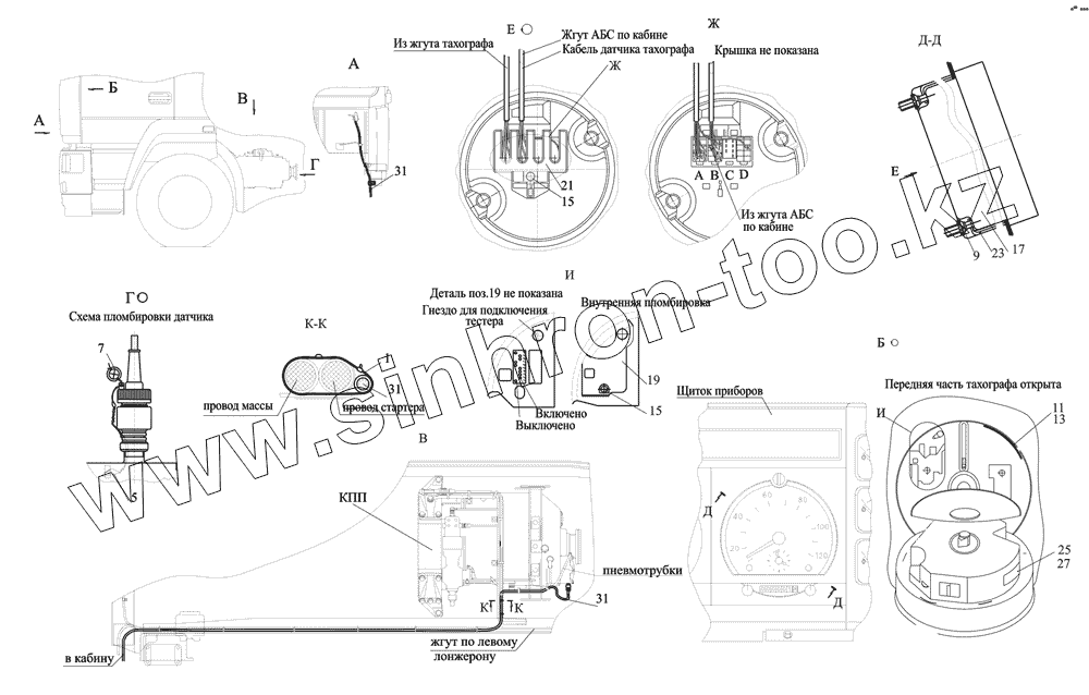 Каталог запасных частей к технике: МАЗ-530905. Установка и пломбировка тахографа 5440-3800005-040