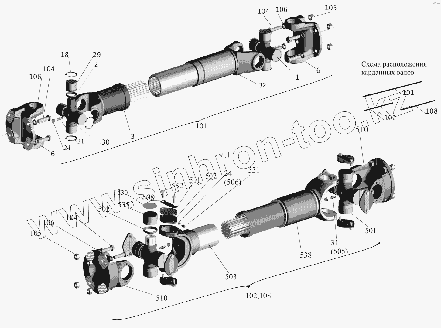 Каталог запасных частей к технике: МАЗ-530905. Установка карданных валов