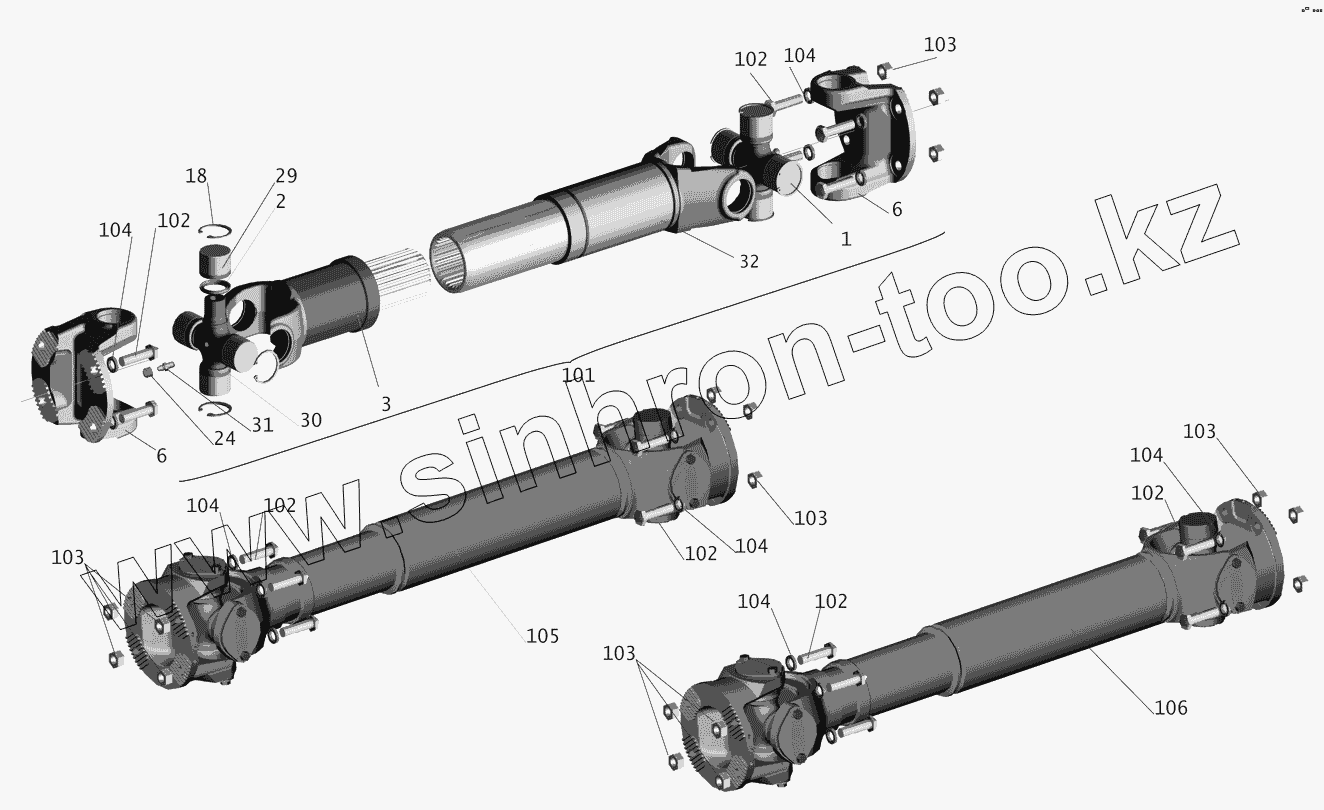 Карданный вал в сборе привода заднего моста с подшипниками импортного пр-ва