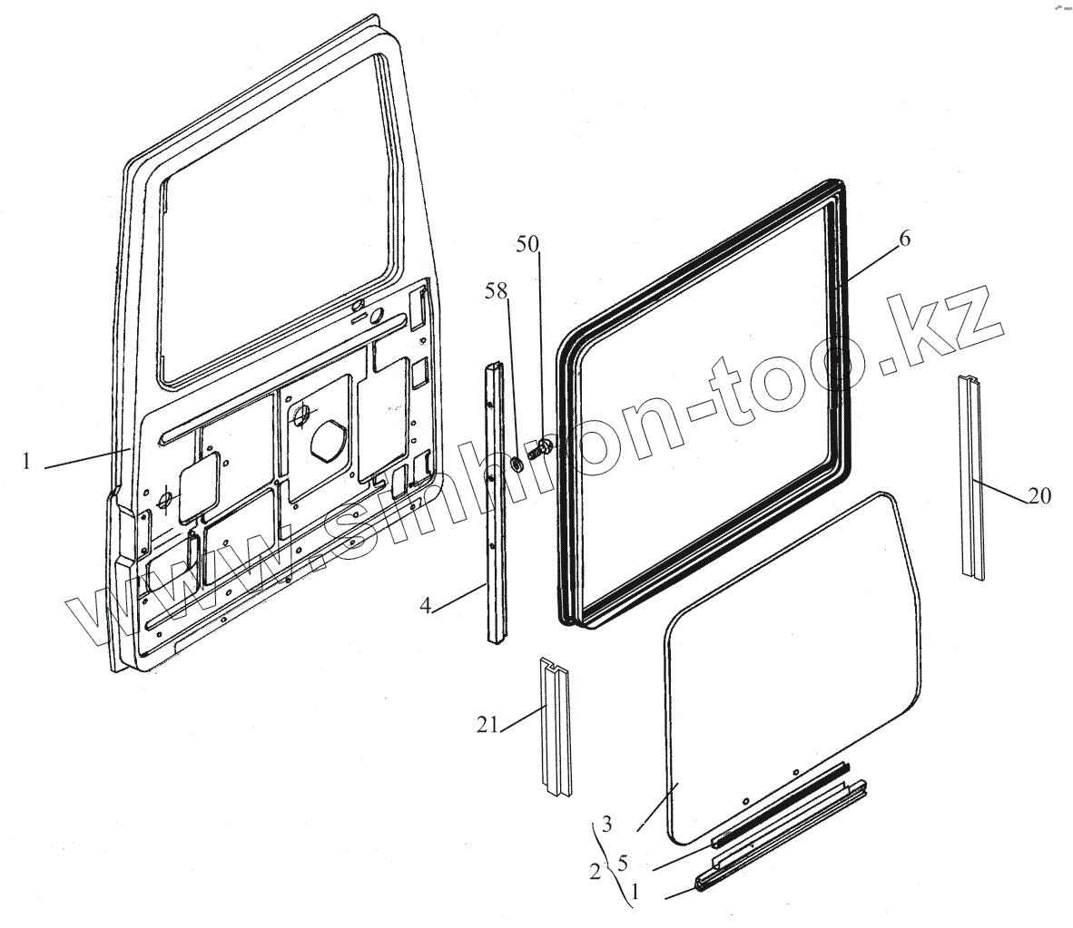 Каталог запасных частей к технике: МАЗ-530905. Установка опускного стекла