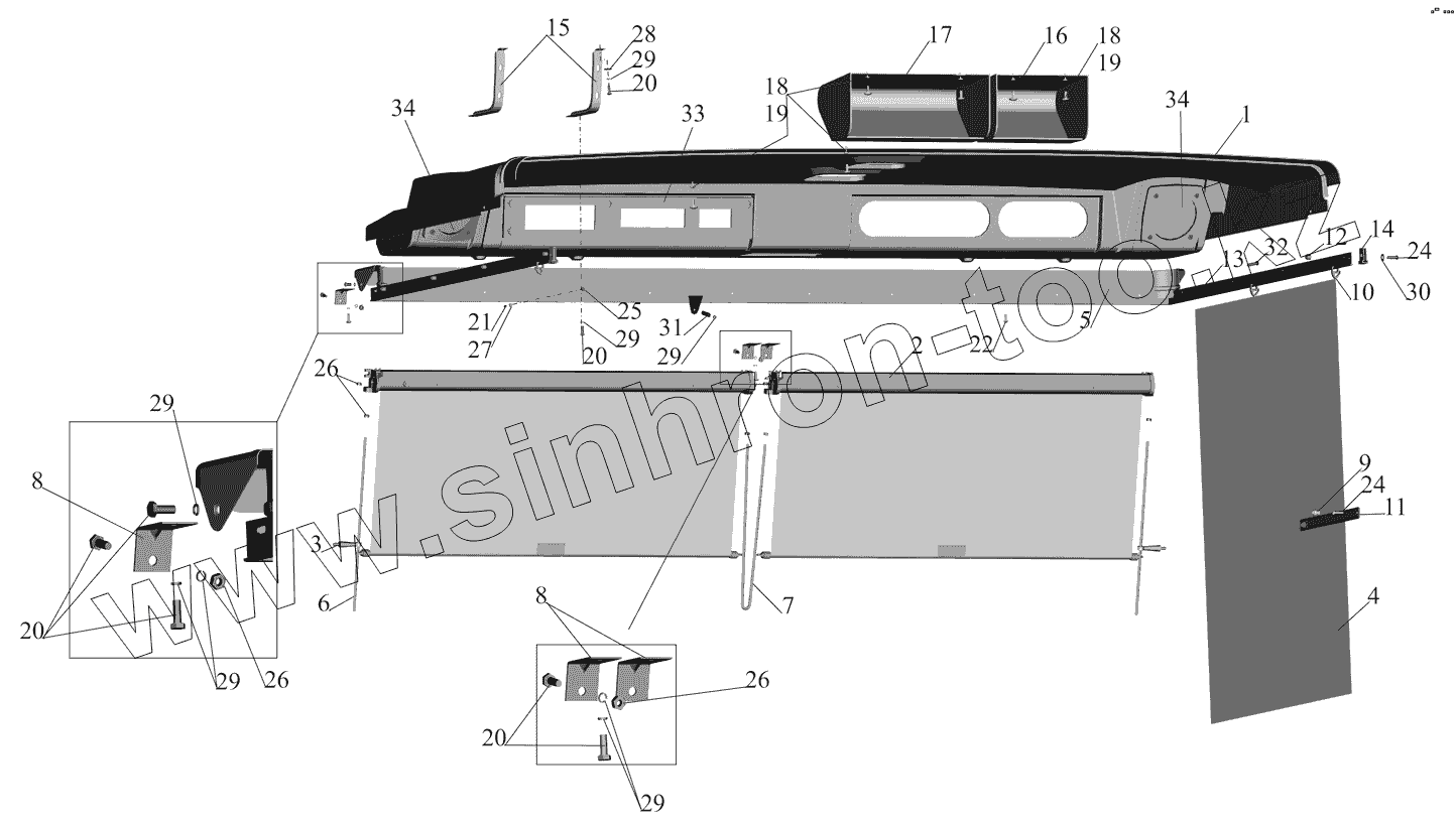 Каталог запасных частей к технике: МАЗ-530905. Установка полки и штор 6501-8200034